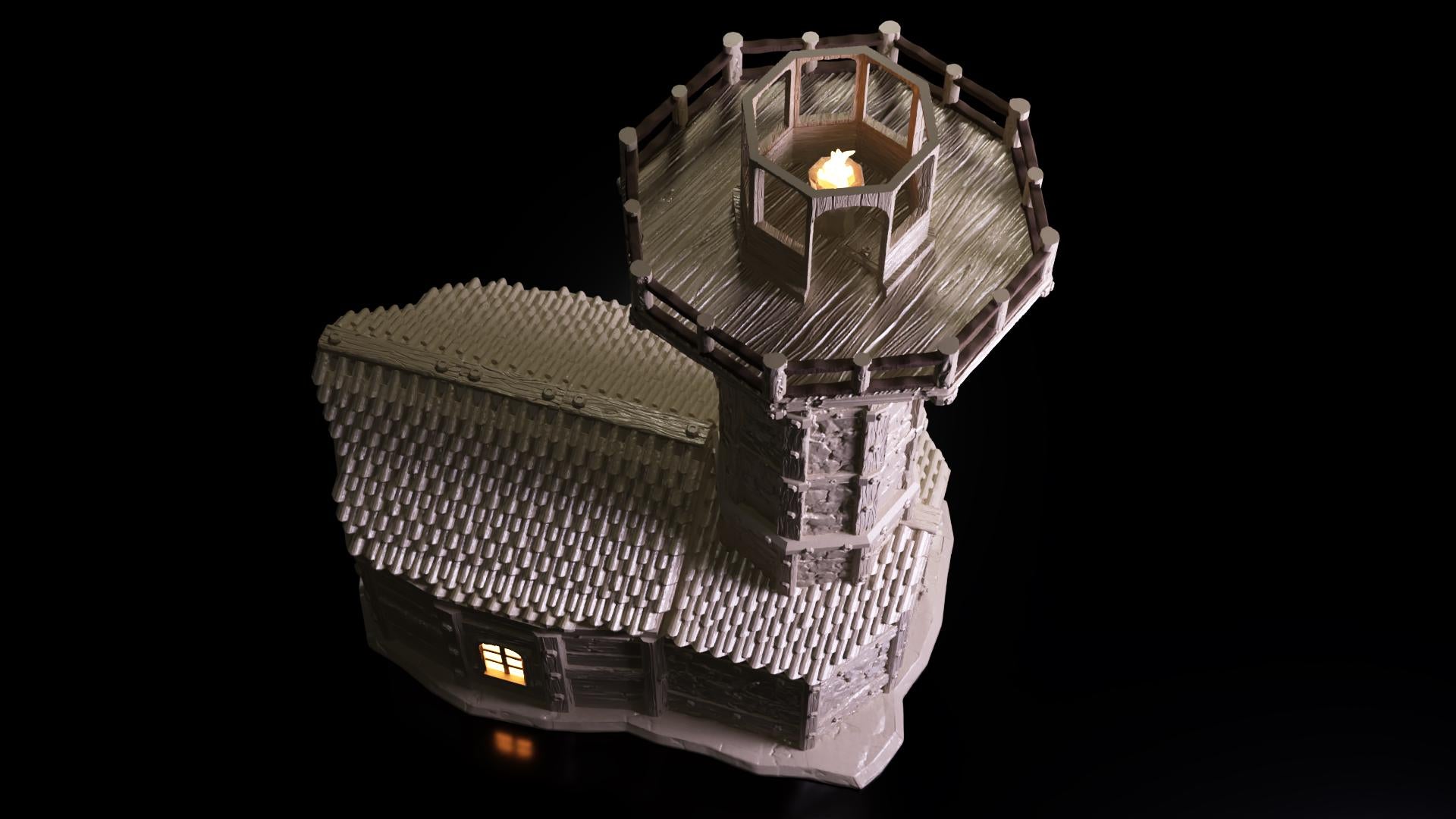 Bring a touch of seaside adventure to your tabletop RPG sessions with this custom 3D-printed Lighthouse Tavern and Tower! Designed to elevate your immersive gameplay, this multilevel lighthouse structure combines a cozy log-cabin tavern on the ground floor with a towering beacon above—perfect for coastal encounters, pirate raids, or any maritime-themed quest in Dungeons & Dragons, Pathfinder, and other RPGs. The upper deck even has room for a flickering LED tea light, adding a genuine glow to the look of this majestic tower.